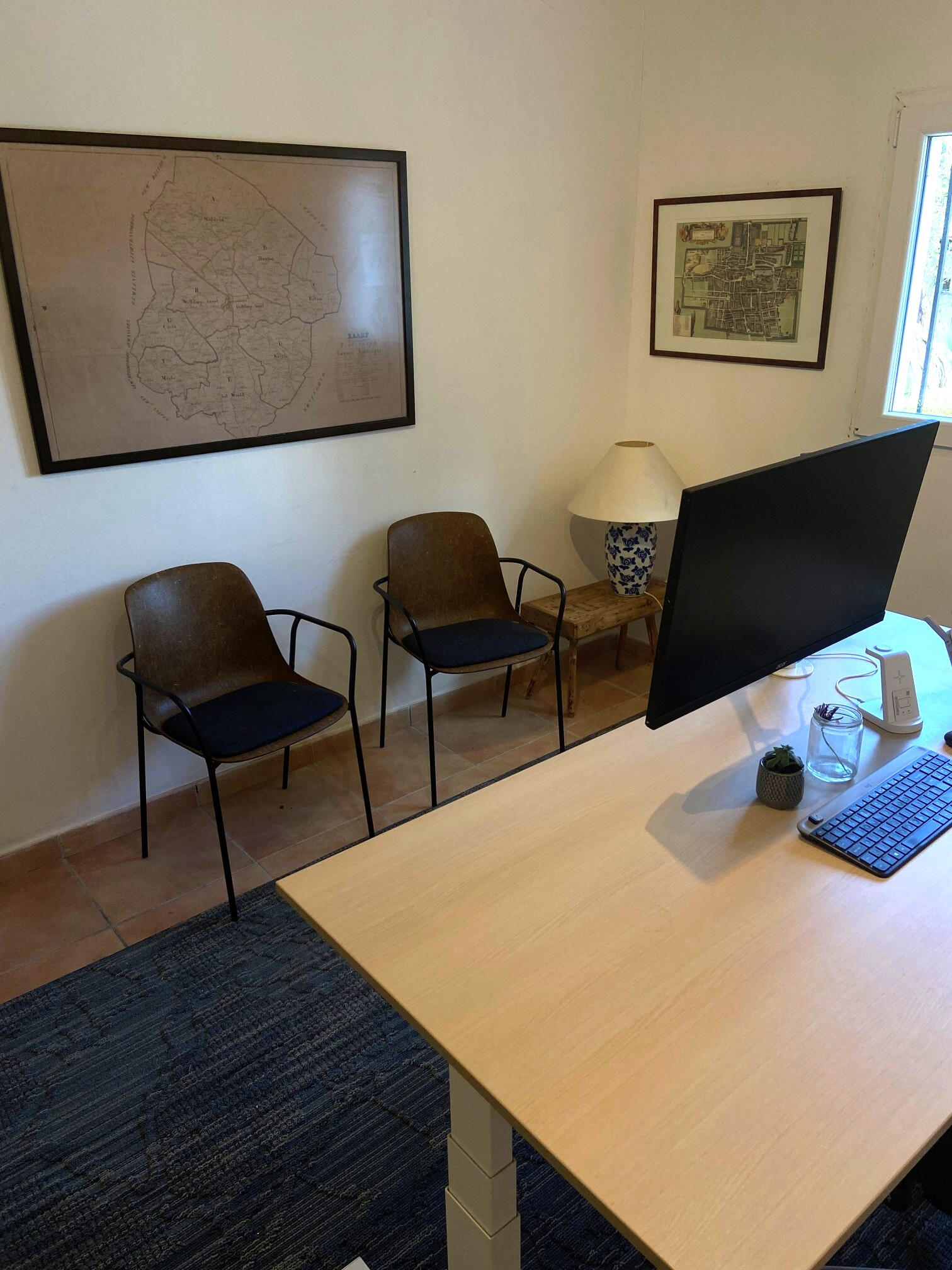 A calm, professional workspace near Las Dalias, sit/stand desks, ergonomic chairs, fast Wi-Fi, kitchen + great coffee, osmosis water, free parking.